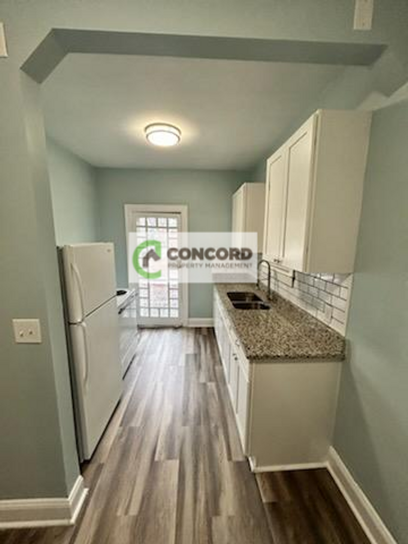 2 Bedroom, 1 Bath Apt. in Historic District Newly Renovated 2021 - NEWLY Renovated Kitchen, Subway tile back splash, granite counters, New Kitchen Cabinets, New Kitchen Flooring, New Stove, New Fridge. Hardwood floors thru out the house and electric baseboard heat, window A/C. You do have access from the front door and the back door upstairs. LAUNDRY ROOM in the BASEMENT coin operated.