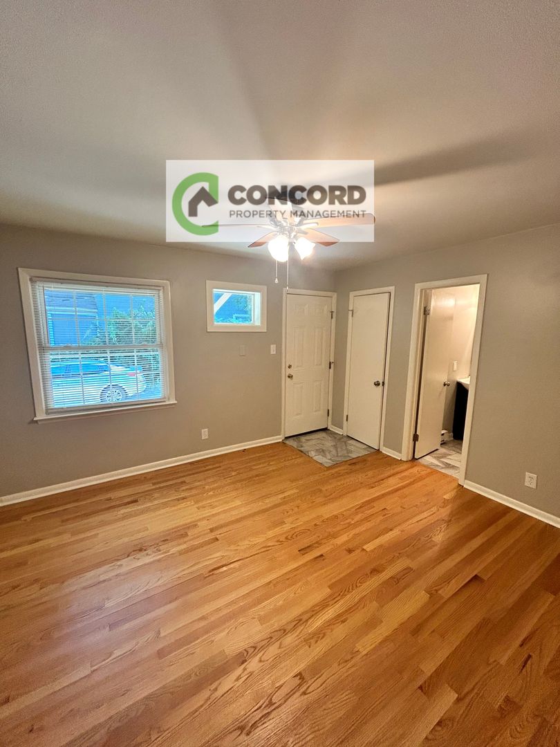 1 Bedroom 1 Bath - Close to downtown GSO. Subway tile back splash in kitchen. Stainless steel fridge and stove. Granite counter tops with stainless undermount sink. Refinished hardwood floors, Central A/C and heat wall units. ALL ELECTRIC.